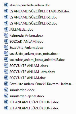 atasöz-cümlede anlam EŞ ANLAMLI SÖZCÜKLER TABLOSU EŞ ANLAMLI SÖZCÜKLER-1 EŞ ANLAMLI SÖZCÜKLER-2 İKİLEMELE.. Kelimede_Anlam SOZCuK_ANLAMI SozcUkte_Anlam sozcUkte_anlam_ders_notu sozcukte_anlam_konu_anlatimi2SÖZCÜKTE ANLAM SÖZCÜKTE ANLAM -dzn SÖZCÜKTE ANLAM Sözcükte Anlam-Örnekli Kavram Haritası sunulardan sunulardan-genel ZIT ANLAMLI SÖZCÜKLER-1 ZIT ANLAMLI SÖZCÜKLER-2
